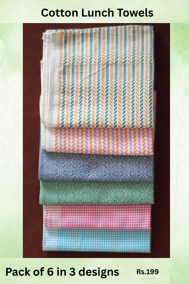 Our Traditional Cotton Lunch Towels made from cotton, these towels are soft, absorbent, and durable, making them ideal for wiping hands, faces, and cleaning up during lunchtime. Convenient for School and Work: This pack of 6 ensures that there’s always a fresh towel ready for each lunch, making them great for kids, students, or adults packing lunch.