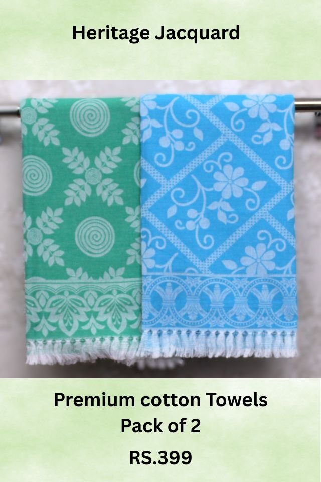 Heritage Jacquard Towels Pack of 2 The woven patterns add a timeless, elegant touch to your bathroom décor. With this Pack of 2 Jacquard Towels, you get style and function at a great price. Crafted with intricate woven patterns, these towels add a touch of luxury and elegance to your daily routine. They are soft, absorbent, and perfect for everyday use.